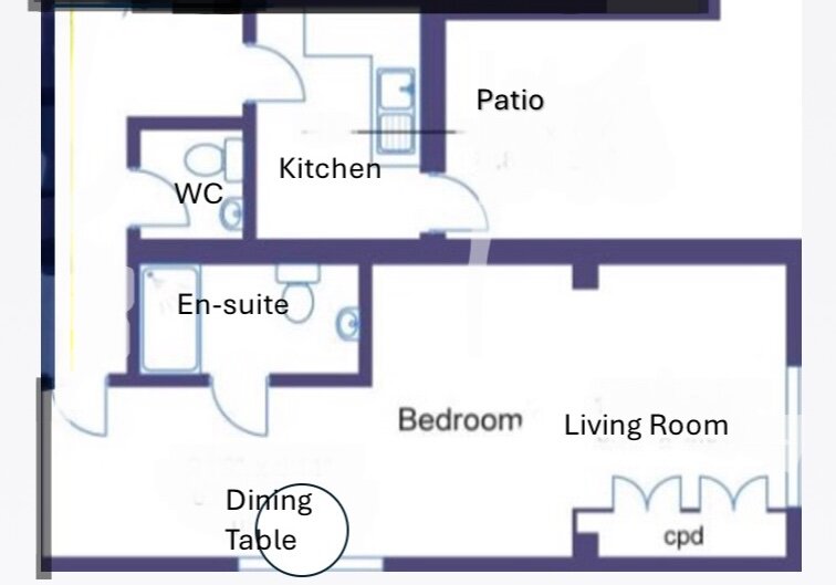 Kitchenette, hallway, second toilet and main room to encompass sitting, eating and dining area, en-suite.